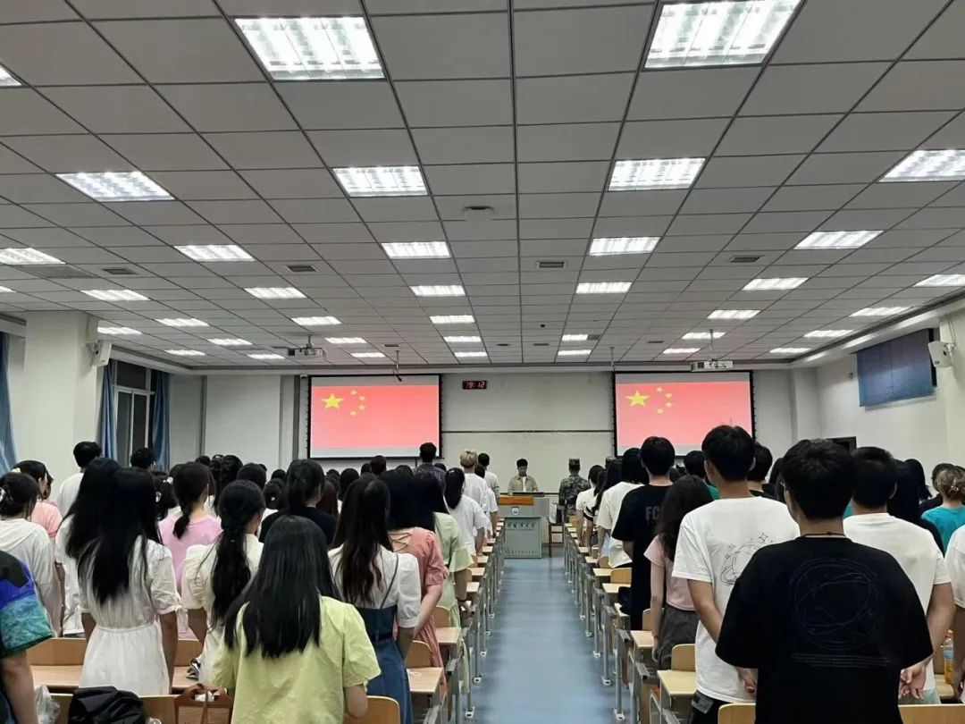 2023年5月14日晚,旅游学院2022级军训动员大会在实验楼SD110隆重举行。院长李开宇,军训旅五营政治教导员、学院党委副书记上艳妮,军训旅参谋、国防教育办公室主任王涛,军训旅五营三十一连连长唐梓菘、助训队员刘梅,大学生退役士兵代表倪博涛、张刚、田侠灵,以及全体2022级学生参加大会。动员大会由辅导员高野主持。