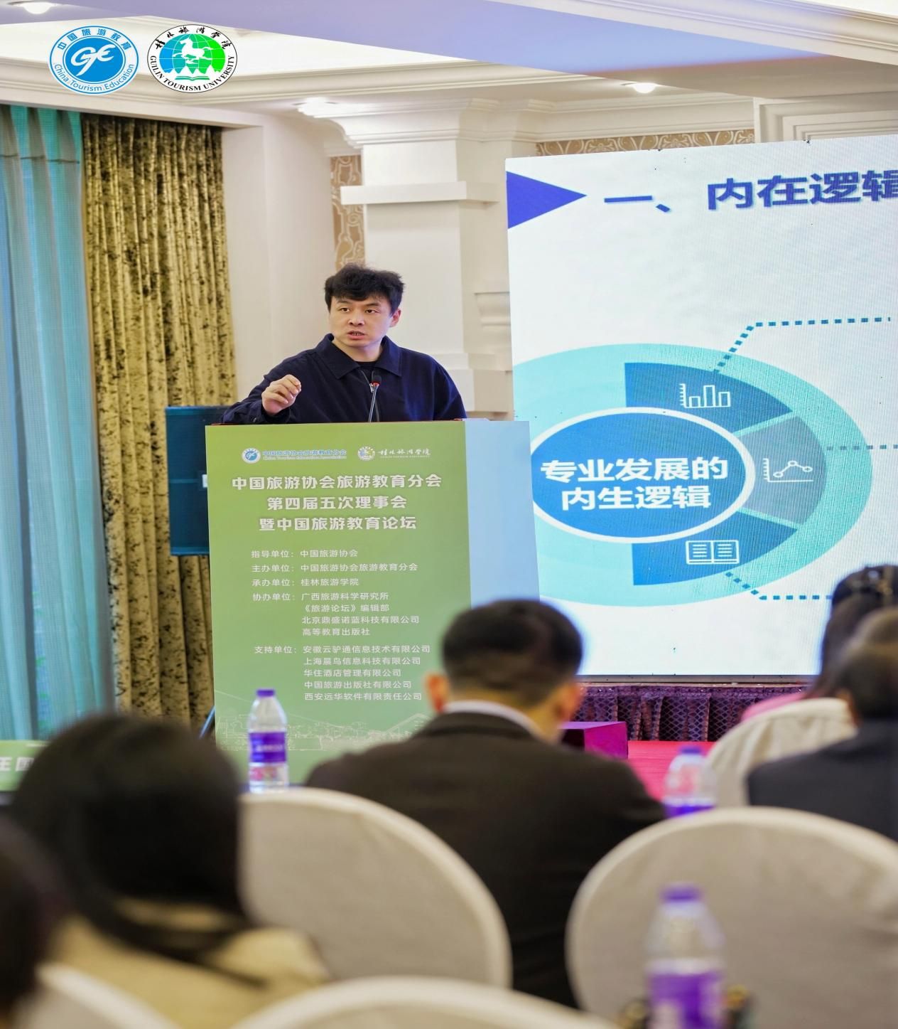 11月16日,中国旅游协会旅游教育分会第四届五次理事会暨中国旅游教育论坛在桂林成功召开。本次论坛由中国旅游协会指导,旅游教育分会主办,桂林旅游学院承办,汇聚了来自全国400余名专家学者、行业代表及高校会员单位参会。论坛以“数智领航旅游教育焕新”为主题,围绕旅游教育数字化转型、产教融合、国际化人才培养等议题展开深入研讨,包含4场主旨演讲和6个平行分论坛,是国内旅游教育领域的高规格学术盛会。