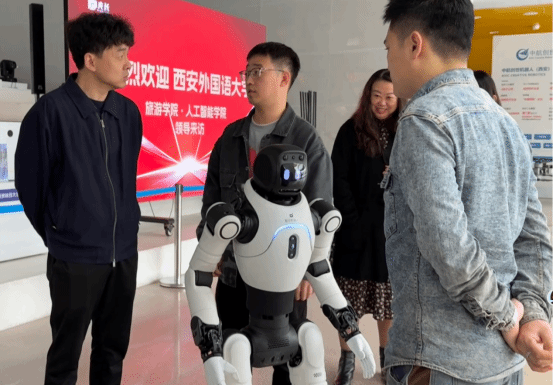 西安外国语大学2013级校友、上海百夫长智能科技有限公司西北区负责人屈国栋对庞闻院长一行的到来表示热烈欢迎,并详细介绍了企业发展情况。他重点阐述了公司在具身智能、多模态人机交互、自主导航与场景理解等领域的核心技术优势,以及在智慧文旅、数字展馆、商业服务、教育实训等场景的成熟落地案例。作为国内专注于实体智能交互与机器人系统集成的高新技术企业,该公司具备硬件研发、场景部署、内容定制、算法优化全链条服务能力,尤其擅长将机器人交互、多语种播报、智能讲解、沉浸式体验有机融合,与学院人工智能、旅游管理、数字文旅、跨文化传播等学科方向高度契合、优势互补,能够为学院提供从实训设备、课程内容、场景搭建到项目共创、成果转化的全维度支撑。