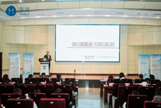 随后,企业嘉宾依次进行主题分享。高江副总经理系统介绍了华住集团发展历程、全球布局、品牌矩阵与行业地位,重点解读汉庭、全季、城际酒店等核心品牌定位与发展战略,并结合陕西省万亿级文旅产业发展规划,深入分析住宿行业人才需求与未来发展趋势。吕翊轩总经理围绕精选服务事业集群发展现状、业务布局与人才培养体系进行详细讲解,帮助学生全面了解酒店运营管理与职业成长路径。刘浩负责人重点推介 “星途计划” 酒店经营类管培生项目,就项目定位、招聘要求、选拔标准、轮岗安排、薪资福利、定岗方向及实习就业保障等内容进行细致说明,并就校企合作长效机制、优质人才联合输送等方面进行深入交流。