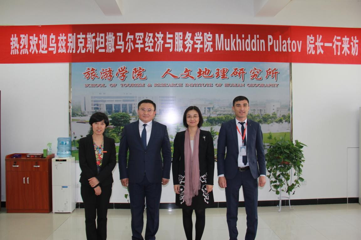 2018年4月9日上午,“乌兹别克斯坦撒马尔罕州西安港企业交流对接会”在西安国际港务区举行,150多名中、乌企业家现场对接洽谈,寻求合作。对接会上,撒马尔罕经济与服务学院与我院签署旅游合作协议,随后,乌兹别克斯坦撒马尔罕经济与服务学院Pulatov Mukhitdin Egamberdievic院长一行来访我院,我院院长潘秋玲、副院长苏红霞亲切会见来宾一行。